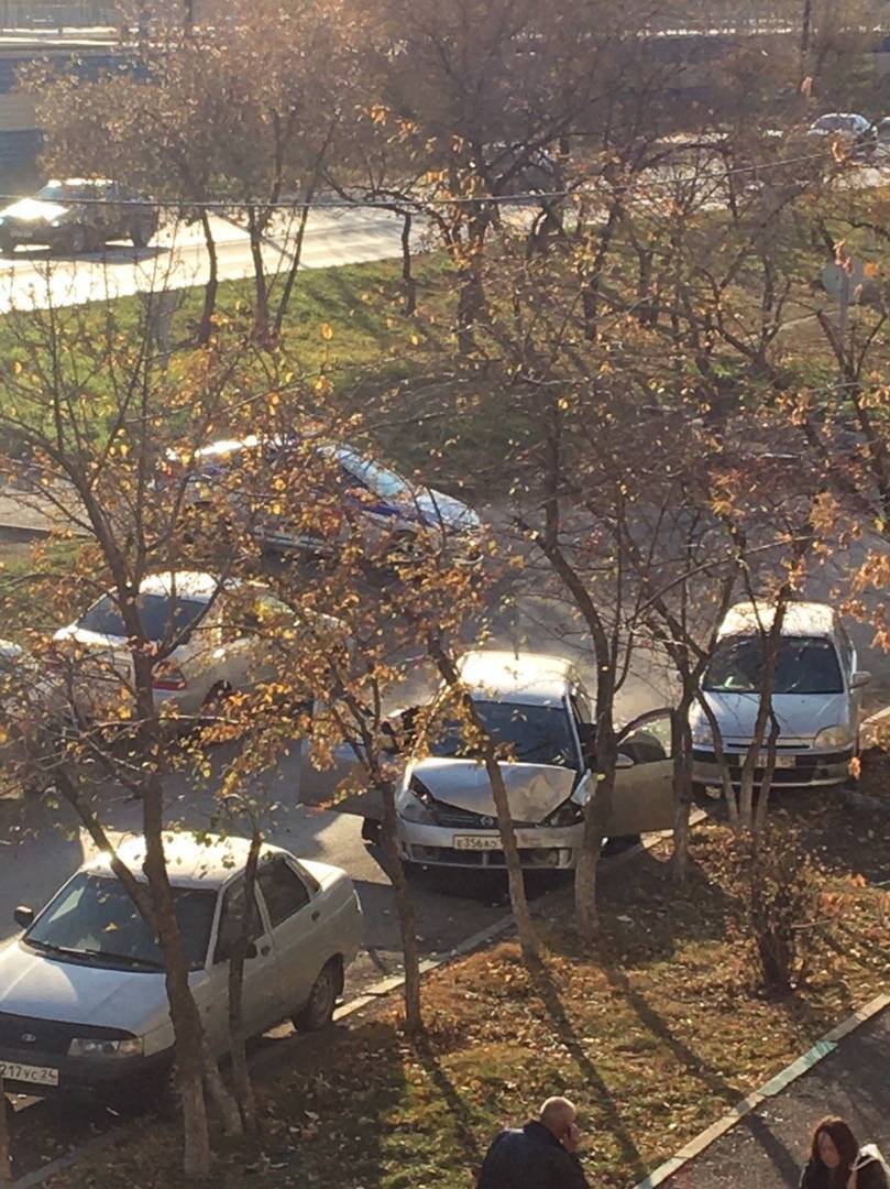 В паблике «ЧП Красноярск» опубликовали фото и видео с места ДТП. Один автомобиль врезался в другой, припаркованный на стоянке, а водитель сбежал с места происшествия.