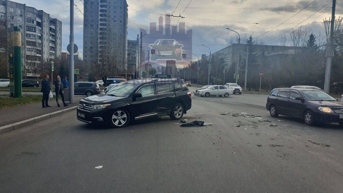 В Красноярске на перекрёстке улиц Республики и Робеспьера произошла серьезная авария. В результате столкновения перевернулся внедорожник «Тойота Хайлендер».