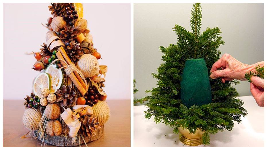 #4 Ёлка из шишекОригинальную ёлочку можно сделать из шишек, шаров, цитрусовых и конфет. Ее можно установить в прихожей, на кухне или в детской, она станет дополнением к главной новогодней красавице.