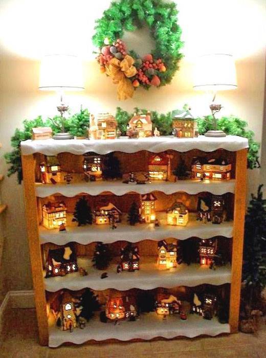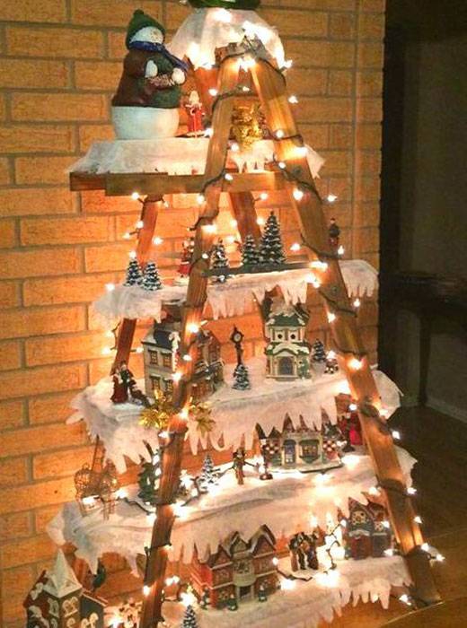 Обычная стремянка или стеллаж при желании может превратиться на время новогодних праздников в настоящий сказочный городок.