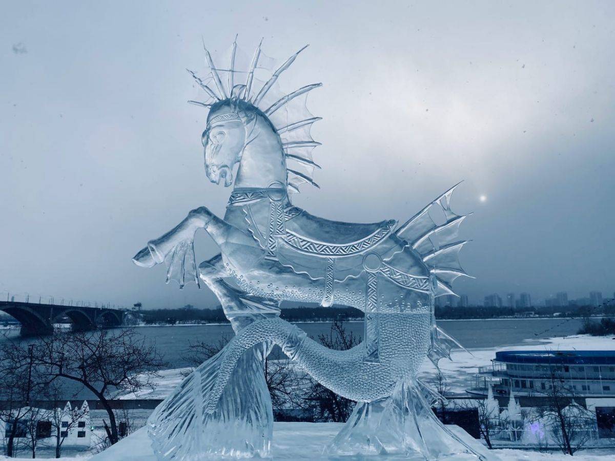 Третье место отдано скульптуре «Морской конь», созданной участниками команды «Holodec» из Екатеринбурга. Мифический герой из кристально прозрачного льда выглядит величественно.