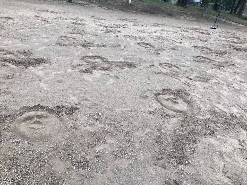 Красноярец Владислав Гультяев разрисовал пляж на острове Татышев. Художник схематично изобразил 50 лиц наркоманов. Об этом он сам рассказал в соцсетях.