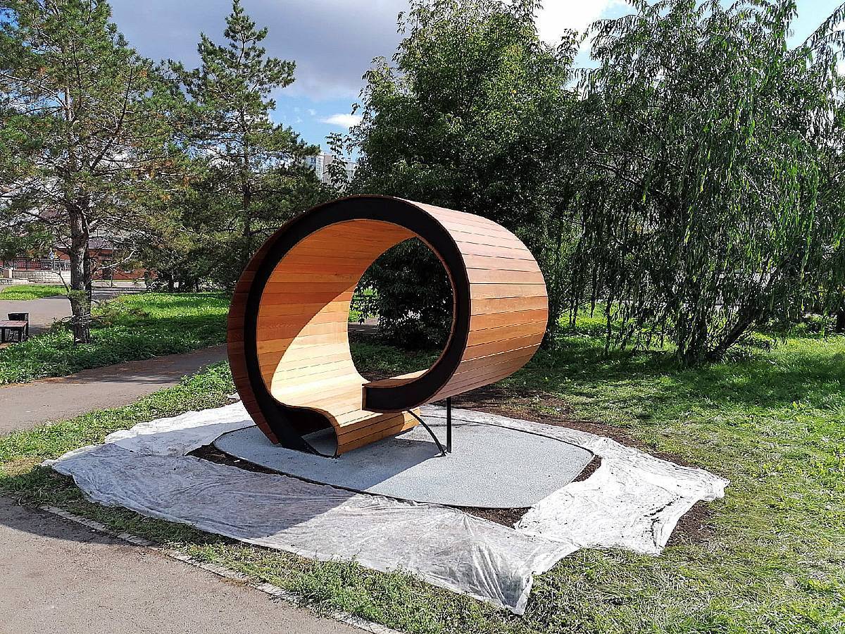 На ул. Республики на берегу Качи появился новый арт-объект. Недалеко от педагогического университета и студенческих общежитий установили необычную скамейку. Конструкция предмета уличной мебели представляет собой своеобразное колесо, внутри которого с комфортом могут разместиться два человека. Верхний изгиб скамьи можно использовать в качестве стола. За ним удобно работать с ноутбуком или делать записи в тетради, не боясь капризов погоды. Внутри конструкции сделана надпись «Время — самый ценный ресурс, не стой на месте, действуй уже сегодня».