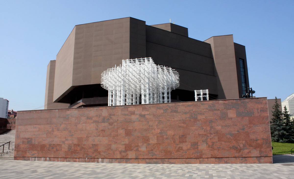 - …эфемерное сооружение — многозначный символ «войны и мира». Есть в инсталляции и тематический жест: две «плененные мины». Музей ненавязчиво предлагает публике пацифистскую ситуацию отдыха «на бомбах». Сияющее днем и ночью «облако» стало самым популярным в городе фоном для селфи, — говорится в описании объекта на сайте премии АРХИWOOD.