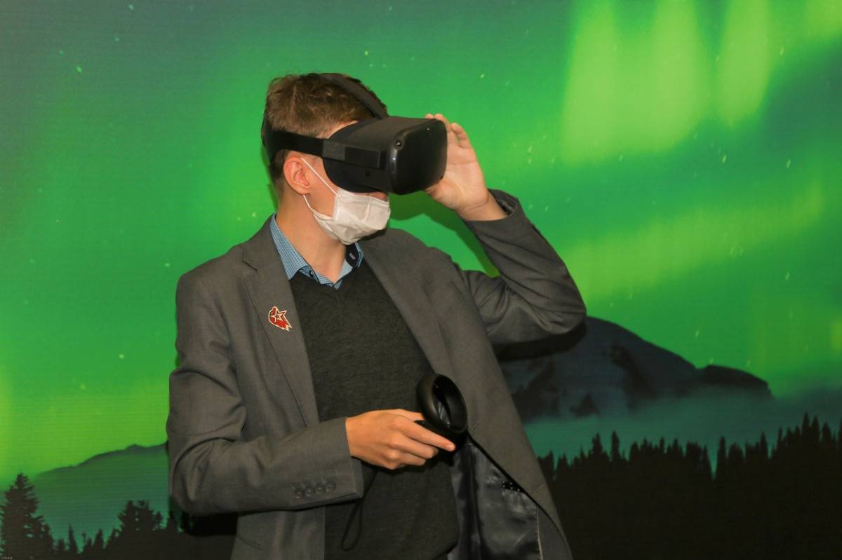 В VR-шлем загружен ролик, на которой снято северное сияние. Параллельно с этим идет аудио-экскурсия о Крайнем Севере.