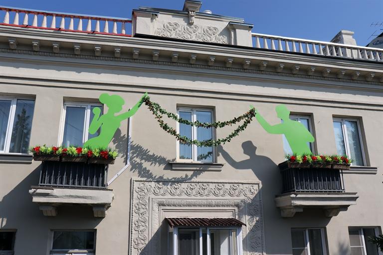Ещё одним победителем городского этапа конкурса от Центрального района стала композиция, украсившая сразу два балкона в доме по пр. Мира, 106. Здесь появились фигуры двух влюблённых, которые держат цветочную гирлянду. Этот пример так вдохновил жильцов дома по пр. Мира, 50, что они задумали в следующем году преобразить сразу четыре лоджии. Сейчас красноярцы готовят проект и думают, как воплотить свою идею.