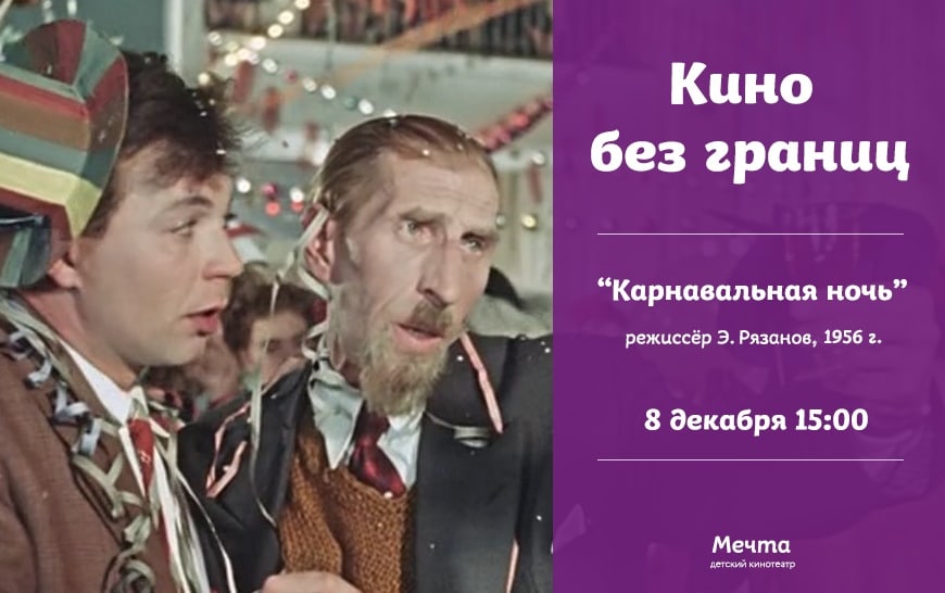 - Красноярский кинотеатр «Мечта» — один из немногих за Уралом, показывающий фильмы, адаптированные для людей с особыми потребностями. В этом году из-за пандемии не удалось показать зрителям все запланированные картины. Но в преддверии Нового года красноярцам предлагают посмотреть одну из лучших советских комедий — музыкальный фильм «Карнавальная ночь» режиссёра Эльдара Рязанова. В своё время картина стала лидером советского кинопроката, — отметили в мэрии.