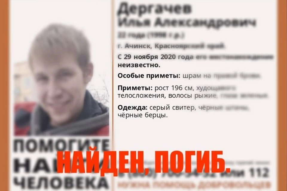 В Ачинске завершили поиски пропавшего 22-летнего Ильи Дергачева: он погиб. И погиб при весьма странных обстоятельствах, которые теперь будут выяснять следователи. Исчез юноша еще 29 ноября. В тот день он находился со своими друзьями, все выпивали. Как рассказывают сами друзья Ильи, юноша напился и стал вести себя неадекватно в машине, после чекго его высадили, но в машине остались все теплые вещи и телефон. Температура в тот день в Ачинске опустилась до -11 градусов