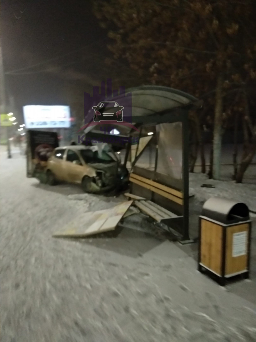 В Красноярске водитель на легковом автомобиле въехал в остановку на улице Игарская, после чего сбежал, оставив машину на месте происшествия. Фото и видео ДТП опубликованы в сообществе «ЧП Красноярск». Судя по записи, всё произошло на остановке «Площадь Победы» в направлении центра города. На заднее стекло иномарки наклеен предположительно знак «Шипы».