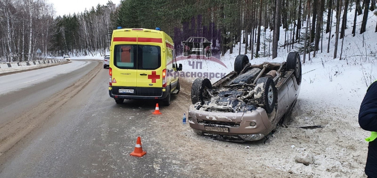 На трассе под Красноярском перевернулась машина. Предположительно, водитель уснул за рулем. Кадры с места ДТП появились в соцсетях. На них видно, как перевернутый автомобиль лежит на обочине. Рядом находится машина реанимации.
