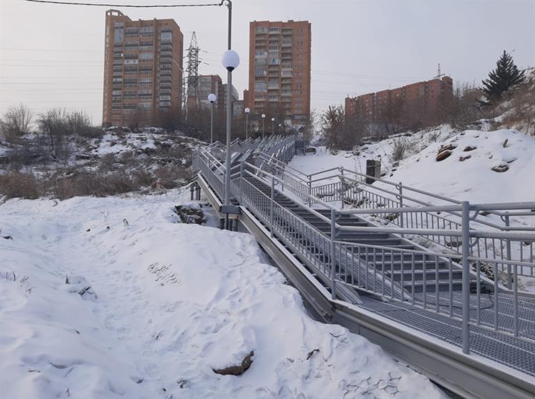 В Красноярске завершили работы по обустройству лестницы в микрорайоне «Орбита». Она появилась в районе дома по адресу ул. Дачная, 27 и соединила микрорайон с новым надземным пешеходным переходом через Николаевский мост. Ранее новости «7 канала Красноярск» рассказывали, что замена старой деревянной лестницы здесь задерживалось из-за того, что у субподрядчика возникли трудности с закупкой материалов.