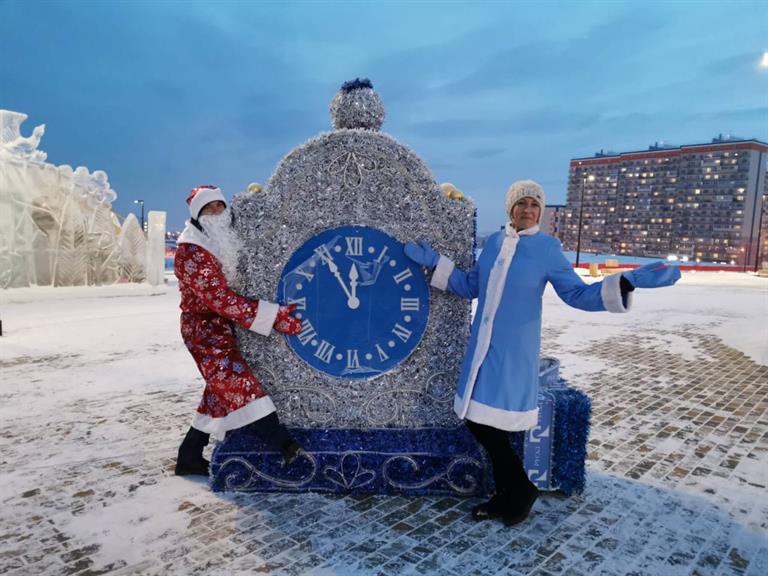 В Красноярске недавно открытый сквер в микрорайоне Солнечный получил подарок-украшение для своей первой новогодней площадки. Сквер «Солнечная поляна» был торжественно открыт буквально 10 дней назад. Тогда глава района перерезал ленточку возле ёлки и вручил автору названия ананас в ящичке. И вот теперь на площади посреди брусчатки появились часы с контурной подсветкой и светодиодными нитями, создавая, по замыслу, сказочную атмосферу в любое время суток.