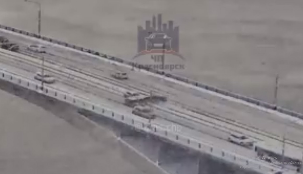 На Коммунальном мосту Красноярска машину выкинуло на встречную полосу