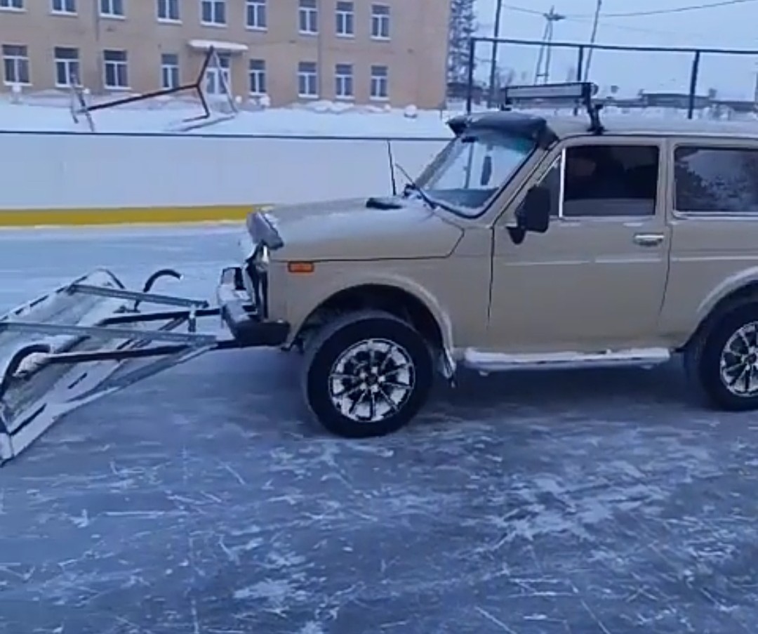 Министр спорта Красноярского края рассказал на своей странице в Инстаграме о ледозаливочной машине, которую придумали в Сухобузимском районе. На «Ниву» установили бочку, из которой поступает вода, в машине есть и особое приспособление, выравнивающее лед.