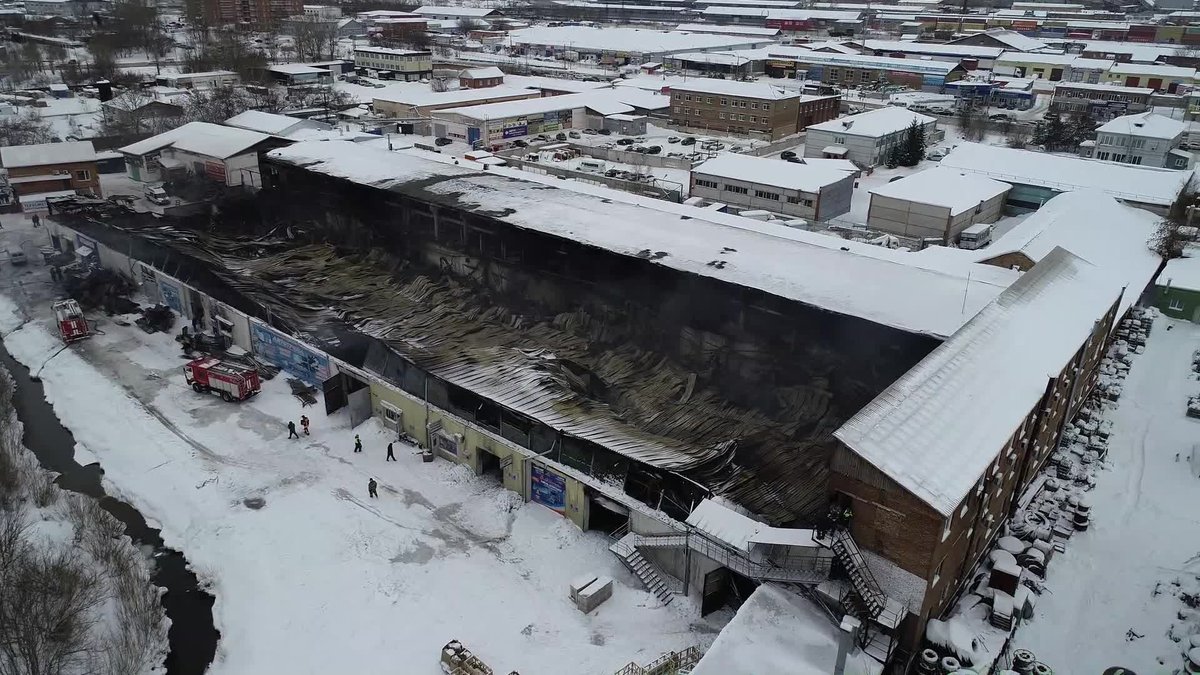 В МЧС показали видео сгоревшего склада запчастей, снятое с квадрокоптера. На кадрах видно, что внутри огонь уничтожил абсолютно все. Площадь пожара составила 3 900 квадратных метров. В тушении пожара принимали участие 169 человек личного состава и 53 единицы техники.