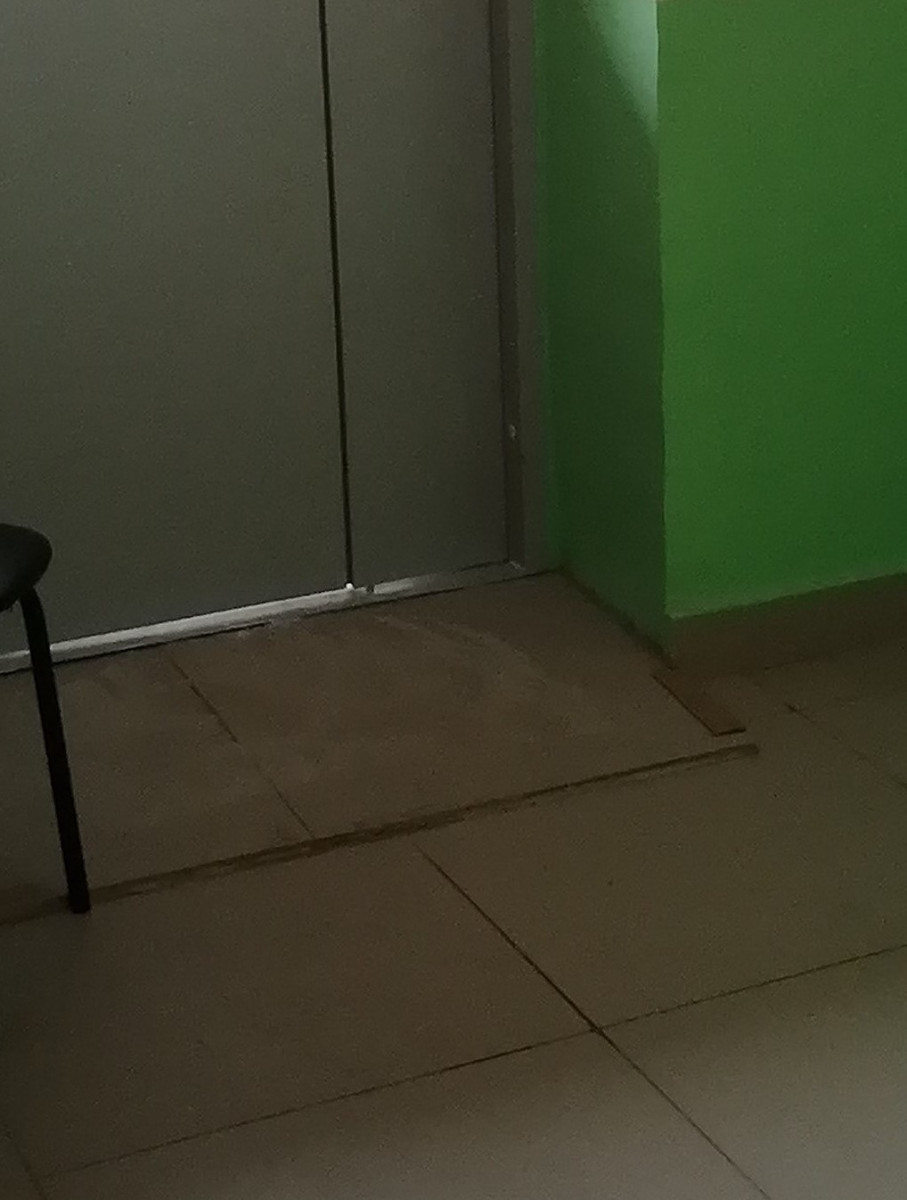 Женщина поскользнулась на полу в тамбуре, пандус там покрыт плитами из керамогранита.
