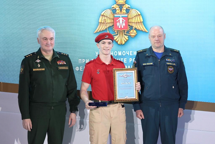 Юноша получил премию в номинации «За мужество, стойкость и героизм, проявленные при оказании помощи пострадавшим». Награду участнику юнармейского движения вручил заместитель министра обороны генерал-полковник Андрей Картаполов.