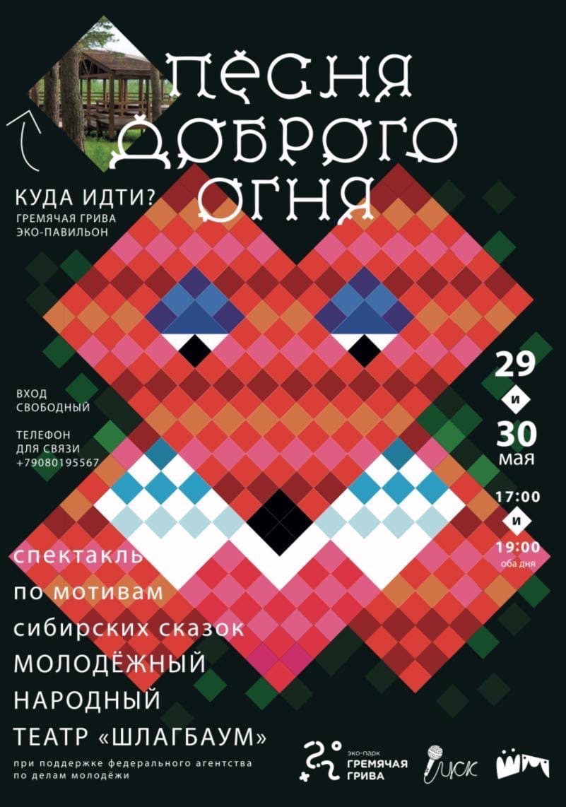 В красноярской «Гремячей гриве» в предстоящие выходные можно будет не только прогуляться по лесу, но и посмотреть спектакль на открытом воздухе. В эко-павильоне парка свою постановку покажет молодёжный народный театр «Шлагбаум». Спектакль называется «Песня Доброго Огня». Он основан на сибирских сказках и легендах.
