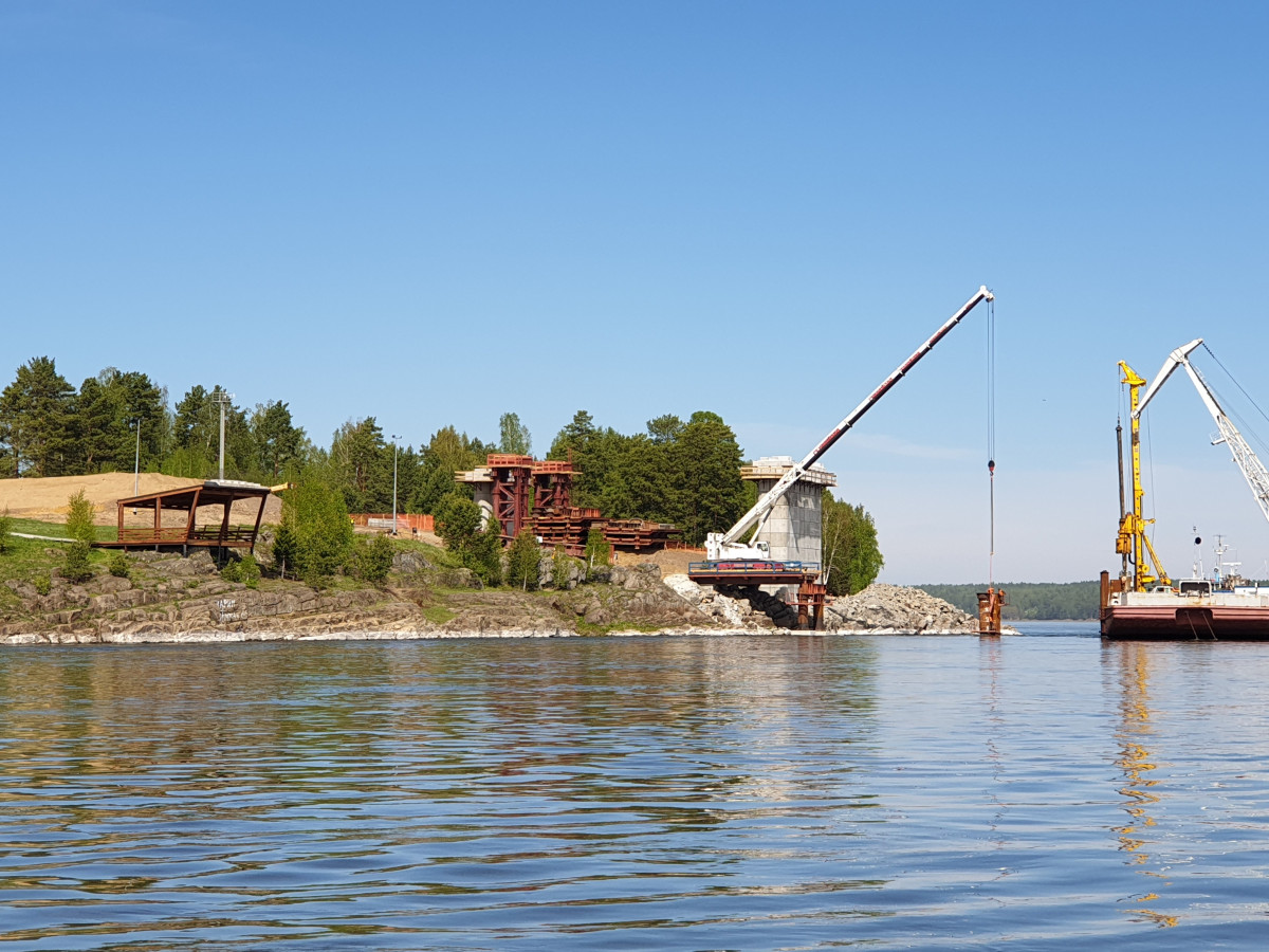 Прочное дно Енисея и сложная гидрологическая обстановка не влияют на график строительства. К августу планируют завершить все буровые работы и приступить к монтажу руслового пролётного строения.