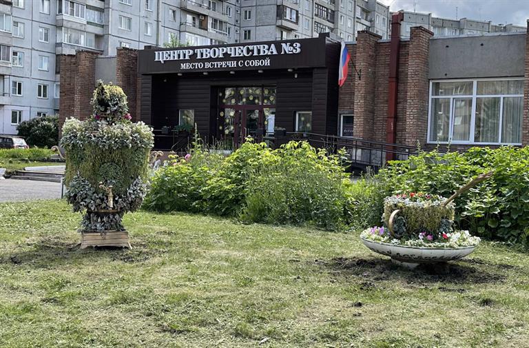 На правобережье Красноярска переместили цветочную композицию — самовар и чайную пару. Раньше она стояла в Ленинском районе, на территории дорожного ремонтно-строительного предприятия. Теперь она украшает Кировский район, а точнее — площадку перед Центром творчества № 3, на Щорса, 55, сообщили в мэрии. Говорят, что место выбрано не случайно. Центр творчества называют гостеприимным и одним из лучших в районе.