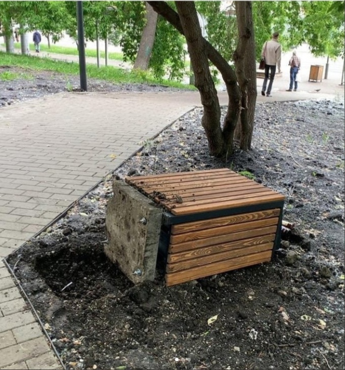На фотографиях видно, что неизвестные с корнем вырвали мусорку, посидели ногами на лавочках и оставили после себя бутылки из-под пива. Все это увидели кураторы, когда приехали проверить, как идет благоустройство места отдыха.