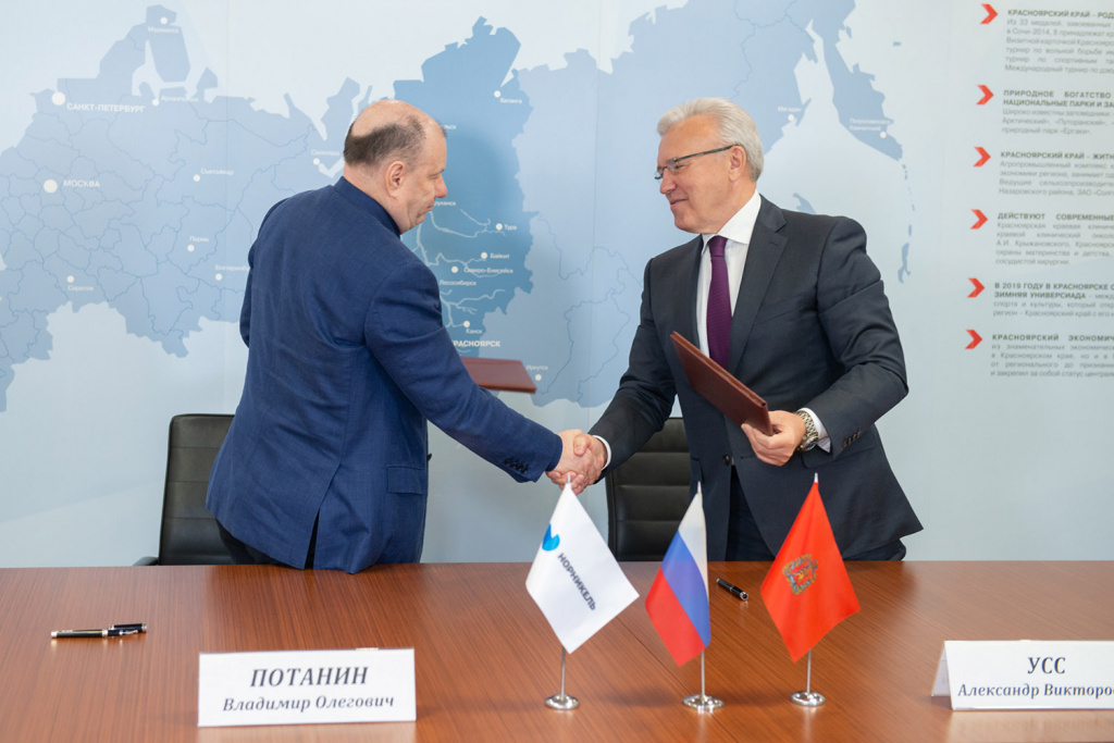 Александр Усс и Владимир Потанин заключили соглашение о сотрудничестве в реализации инвестиционных проектов. Подписание документа состоялось в Москве, рассказали в правительстве края.