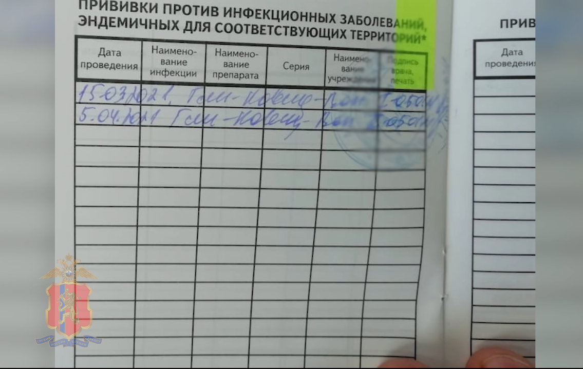 В Красноярске возбуждено первое уголовное дело по факту подделки сертификатов ковидных прививок. Подробности в полиции обещают чуть позже. На видео – идёт обыск в одной из поликлиник Красноярска. За кадром медики объясняют пациентам, что нужно делать, и где брать бланки для заполнения анкет. Люди в форме и без в это время разбирают документы. На поддельном прививочном сертификате все поля замазаны.