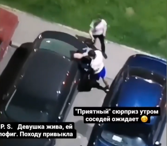 В микрорайоне Солнечный накануне поссорились двое молодых людей. На парковке, в узком проходе между машинами мужчина внезапно схватил женщину за шею, и с размаху опрокинул её на дверь багажника, разбив её головой стекло чужого авто. Видео избиения выложили в паблике kras_sunny.