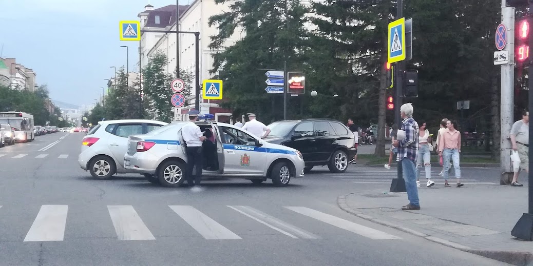 Вчера вечером в центре Красноярска произошла авария. На повороте с проспекта Мира на улицу Парижской коммуны столкнулись две иномарки. В результате был полностью перекрыт поворот на прилегающую улицу, по которой проложен маршрут общественного транспорта, и полосы по проспекту Мира.