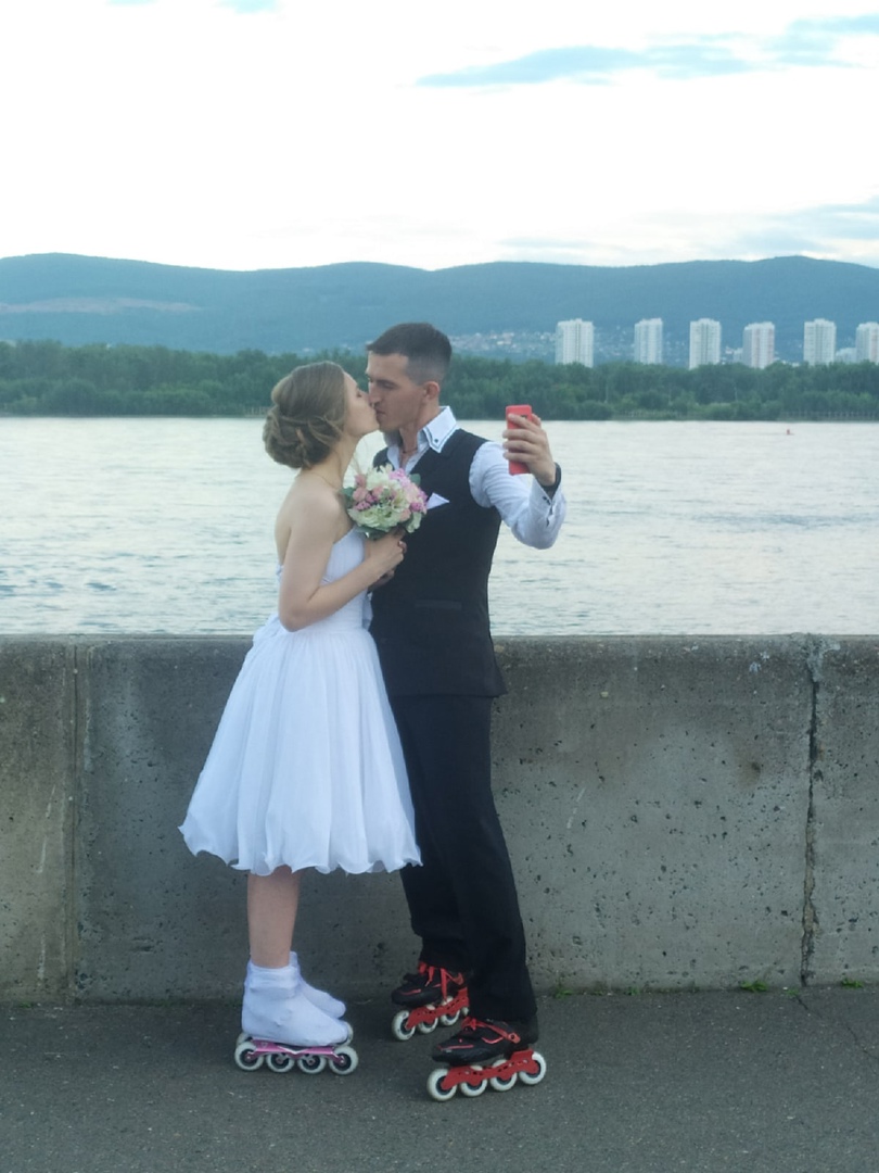 Павел и Вера Брюхановы накануне провели необычную свадьбу. Решили вместо застолий с гостями, конкурсов для молодожёнов и набившего оскомину тамады прокатиться на роликах по острову Татышев и левобережной набережной. Для этого пришлось оповестить администрацию Татышев-парка и собрать гостей. Тоже спортивных ребят. Оказалось, что идея всем понравилась, а количество доброжелательно настроенной публики превзошло все ожидания четы.