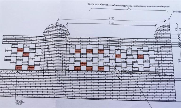 Согласно проекту, ограду восстановят в первоначальном виде. Ее выложат с применением специальных реставрационных материалов в сочетании с сохранившимся историческим кирпичом. Восстановлению подлежит утраченная часть кладбищенской ограды протяженностью чуть больше 132 погонных метров вдоль ул. Шахтеров. Её частично демонтировали из-за аварийного состояния.
