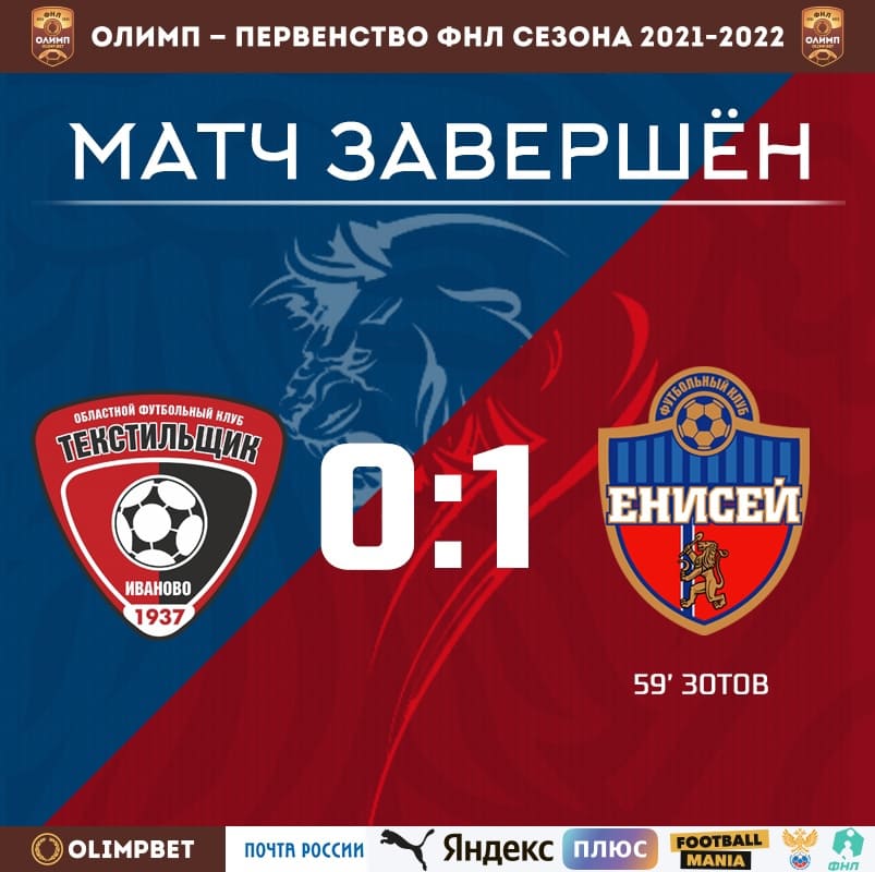 Очередная игра ФК «Енисей» увенчалась долгожданной победой. Накануне команда встречалась с «Текстильщиком» из Иваново. Матч закончился со счетом 1:0 в пользу красноярцев.