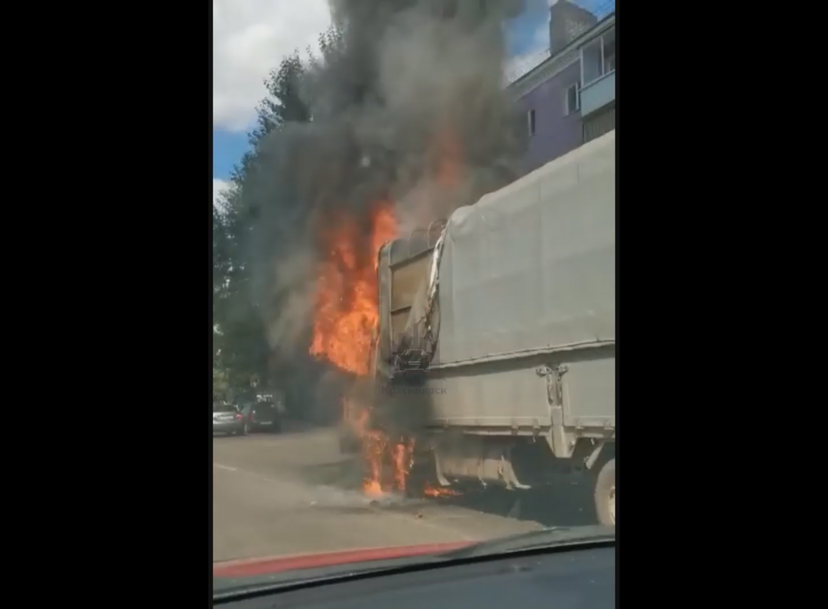 В Красноярске грузовик сгорел на проезжей части улицы Мичурина