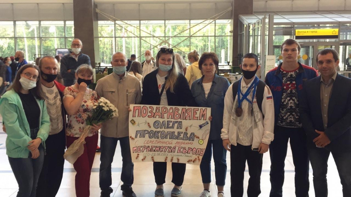 В Красноярском аэропорту встретили серебряного призера первенства Европы по тяжелой атлетике. Олег Прокопьев стал вторым среди юношей до 17 лет, сообщили в мэрии. Турнир прошел в польском городе Цеханув с 20 по 28 августа. В воздушной гавани спортсмена встретила его семья, директор школы тяжелой атлетики Денис Кузнецов, а также тренеры и другие спортсмены.