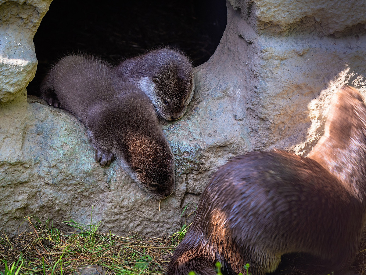 - Забавно наблюдать за тем, как Ассоль учит маленьких выдрят плавать. Сначала личным примером показывает, как нырять в бассейн, потом тихонько подталкивает, и, не выдержав, берёт зубами за холку и сбрасывает в воду. Конечно писк, страх., но мама рядом, всё под контролем! Затем она отводит малыша в домик и принимается за второго. Всё повторяется — писки, вопли…