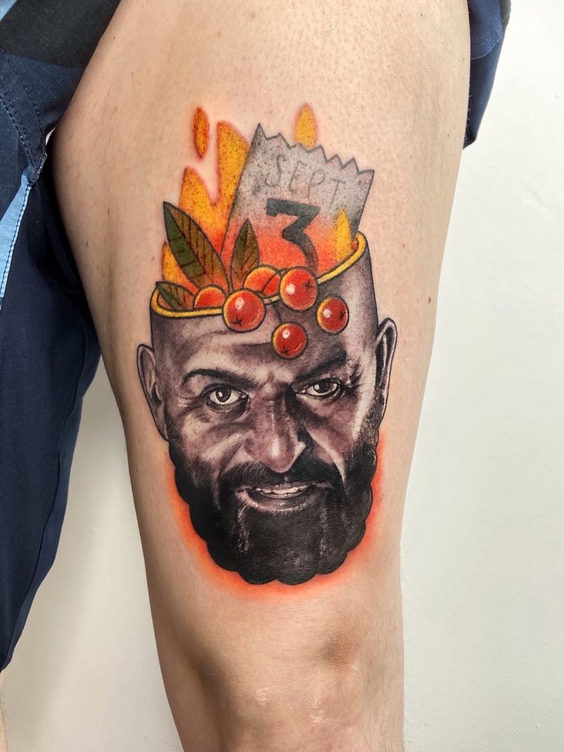 Мария Иволга, так зовут мастера, показала свою новую работу. На плече заказчика, судя по фото, теперь красуется сам шансонье: у парня по имени Роман 3 сентября был день рождения.