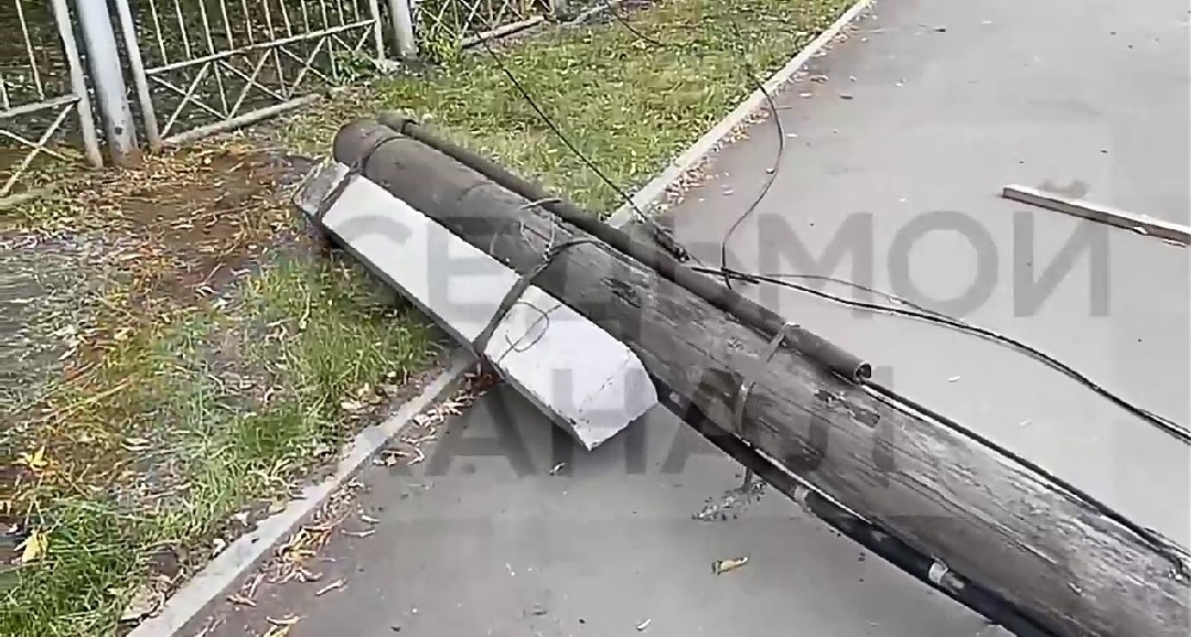 В Красноярске из-за фуры упал столб электропередач: видео