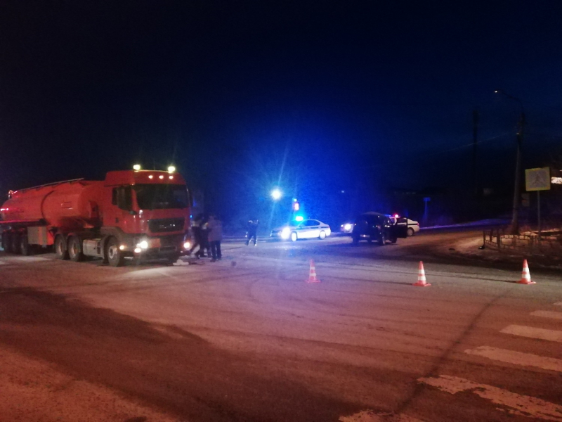 Сегодня утром в Ачинске на перекрестке Кирова и шоссе Нефтяников бензовоз МАН с топливом столкнулся с «Нивой».