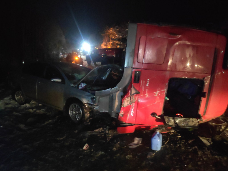 На автодороге Ачинск — Назарово произошла авария с участием бензовоза и легкового автомобиля. Как рассказали в полиции края, 50-летний водитель автоцистерны «Мерседес» не справился с управлением и выехал на полосу встречного движения, где столкнулся с легковым автомобилем «Фольксваген» и опрокинулся. Разлива топлива не произошло.