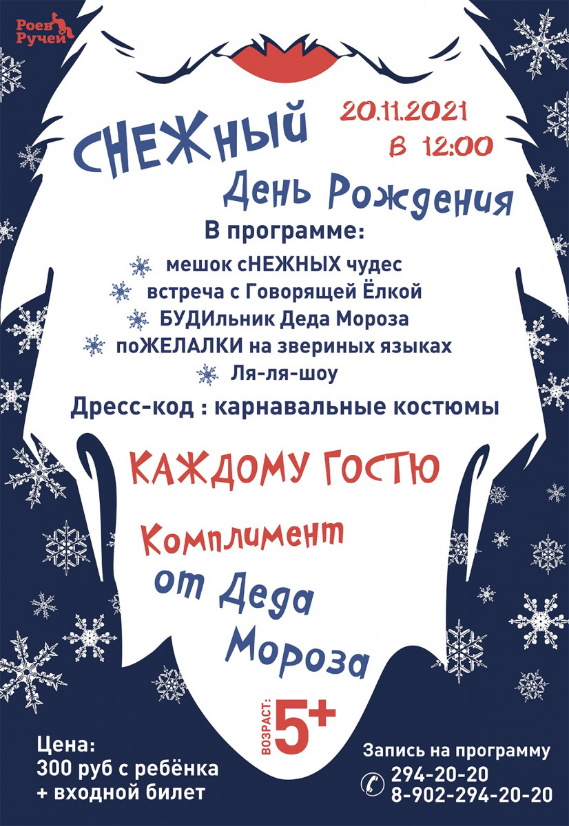 В этом году 18 ноября выпадает на будний день (четверг), в красноярском зоопарке день рождения Деда Мороза отметят в субботу (20.11.). Начало праздника — в 12:00. Для гостей установлен дресс-код, надо прийти в карнавальных костюмах. В «Роевом ручье» подготовлена большая праздничная программа. В том числе, можно будет написать письмо Деду Морозу, запись по телефону 294-20-20.