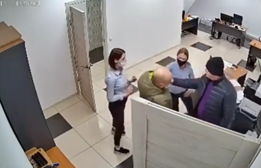 - Я направилась на своё рабочее место в кабинет, куда нельзя заходить посторонним. Он направился за мной, пригрозил мне, что толкнёт меня и я «рассыплюсь», я ему ответила, развернулась и пошла к столу. Далее вы видели все происходящее. После того, как он меня за шею потаскал и пнул — я закричала, чтобы вызывали полицию, и сама не смогла контролировать эмоции, — рассказывает менеджер.