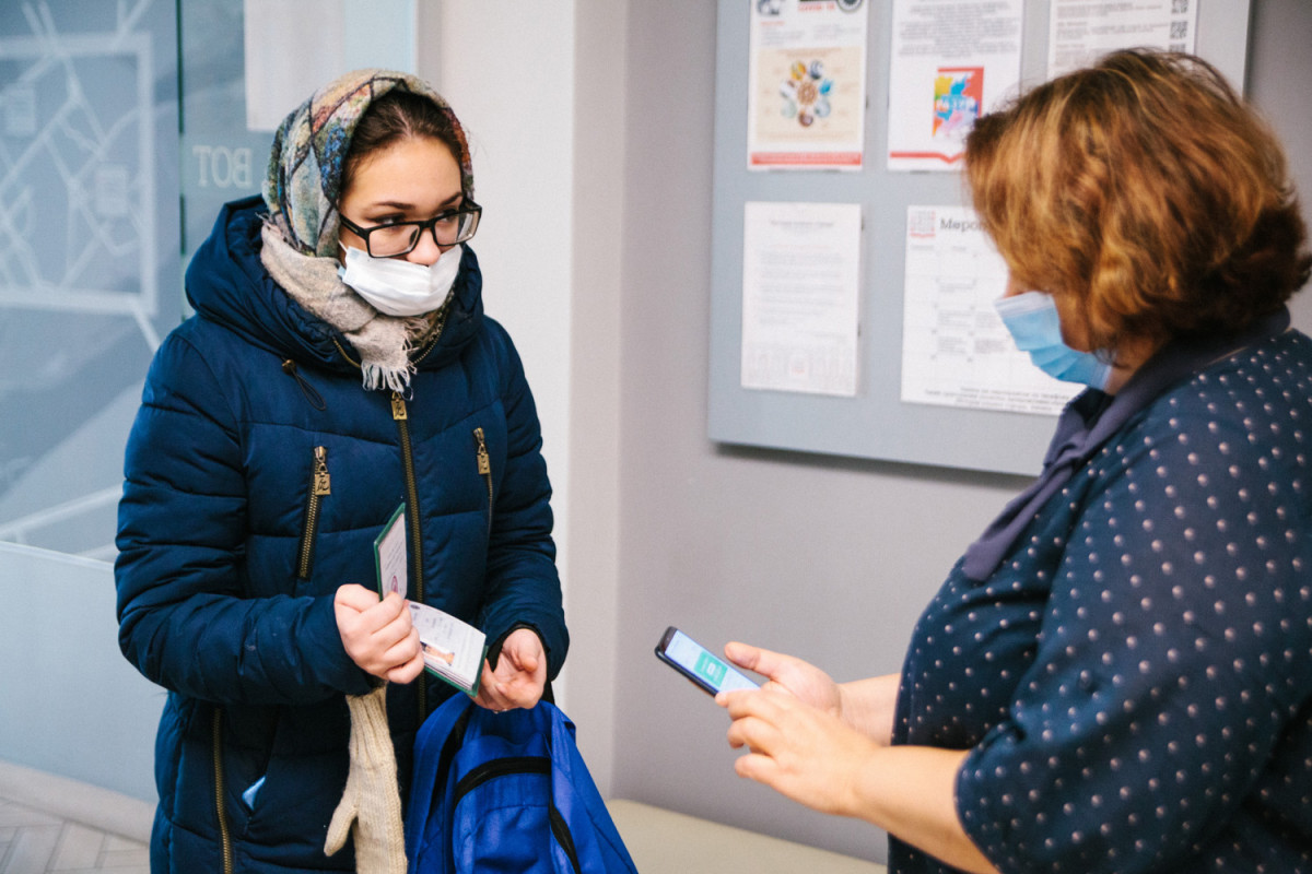 Отметим, коды можно предъявлять как на электронных, так и на бумажных носителях. На входе в каждое учреждение посетителей встречает сотрудник, который сканирует камерой телефона QR-код, а затем сверяет полученные данные с информацией в удостоверении личности.