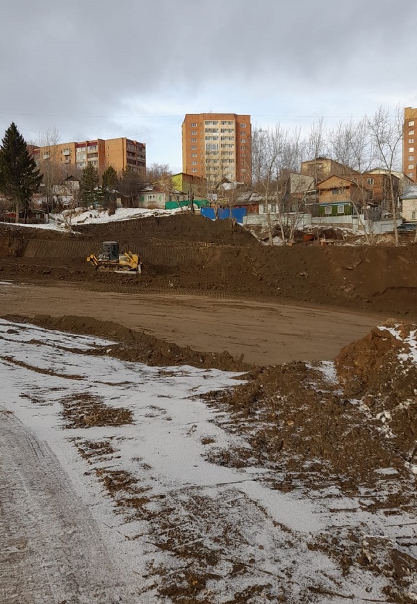 На время проведения строительства закрыли ул. Чкалова. Сейчас здесь идет вынос сетей водоснабжения и канализации. Подрядчик произвел демонтировал старое дорожное полотно и дорожного полотна. Укладка асфальто-бетонного покрытия начнется весной.