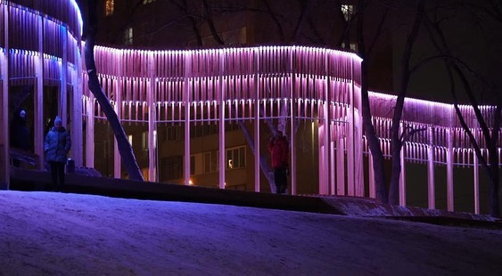 За торговым центром «Красноярье» установили инсталляцию, имитирующую северное сияние. О новой достопримечательности рассказал в «Инстаграме» мэр Сергей Ерёмин. Как он пошутил, Красноярск — «единственный в мире город, где можно ежедневно наблюдать «северное сияние»».
