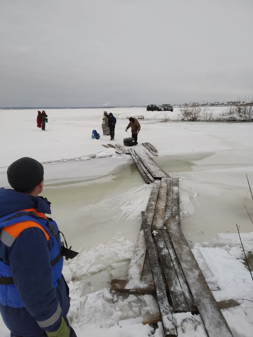 Чтобы переправить рыбаков на берег, специалистам пришлось изготовить деревянные трапы. После спасательной операции с людьми провели профилактические беседы об опасности выхода на лед.