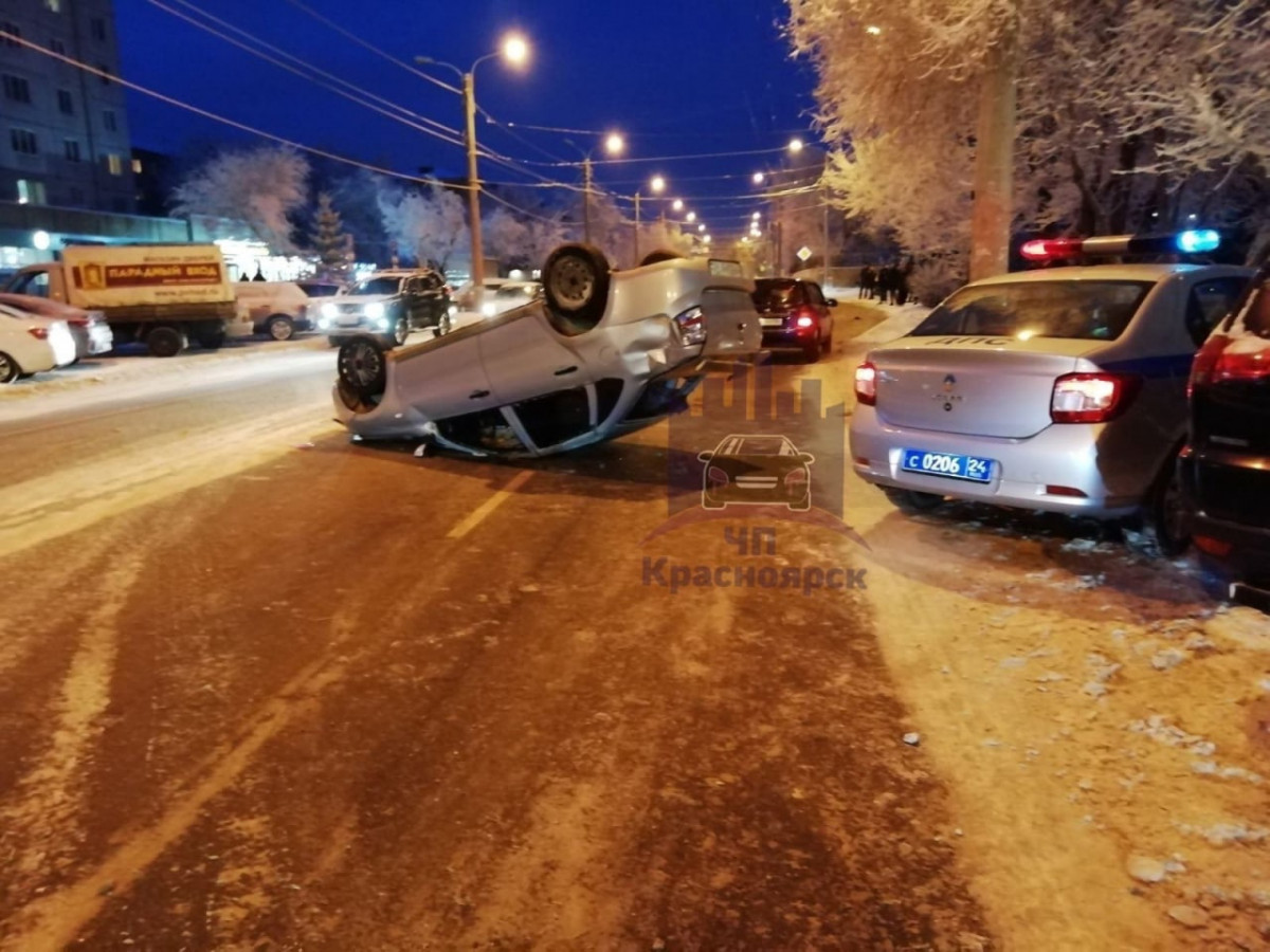 В Красноярске на улице Тельмана произошло ДТП с «перевертышем». По сообщению ЧП Красноярск, «Тойота», выезжая со двора, не пропустила «Ладу». От удара автомобиль отлетел в припаркованные машины и перевернулся. В ГИБДД рассказали подробности аварии: