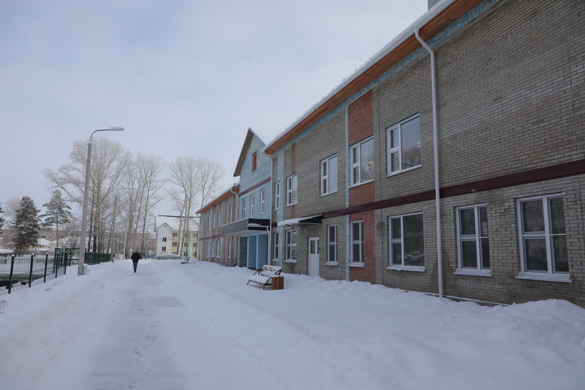 В новом здании кабинеты оборудованы по современным стандартам. Так, в классе информатики компьютеры предусмотрены для каждого ученика. Для уроков технологии построили отдельные мастерские для мальчиков и девочек. Есть также столовая с кухней. К слову, в этом году учебному заведению исполнится 60 лет, поэтому новый корпус школы стал подарком для посёлка.