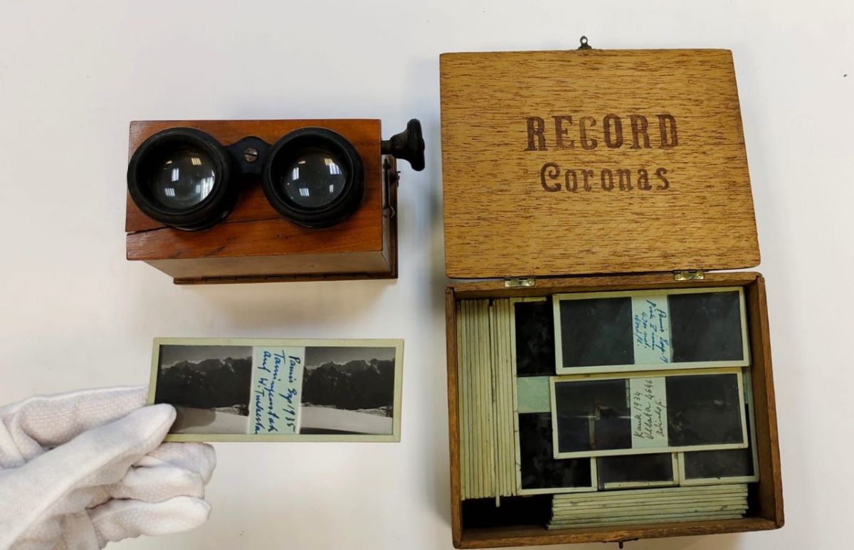 Есть в коллекции и боевые награды Абалакова. Например, за участие в обороне Кавказа. Евгений Михайлович, будучи опытным альпинистом, обучал солдат ведению боевых действий в горах. Карты и стеклянные фотослайды из научных экспедиций Абалакова, датированные 30-ми годами прошлого века, можно также увидеть среди вещей скульптора. На них — горные хребты и пики, ледники Памира и Тянь-Шаня.