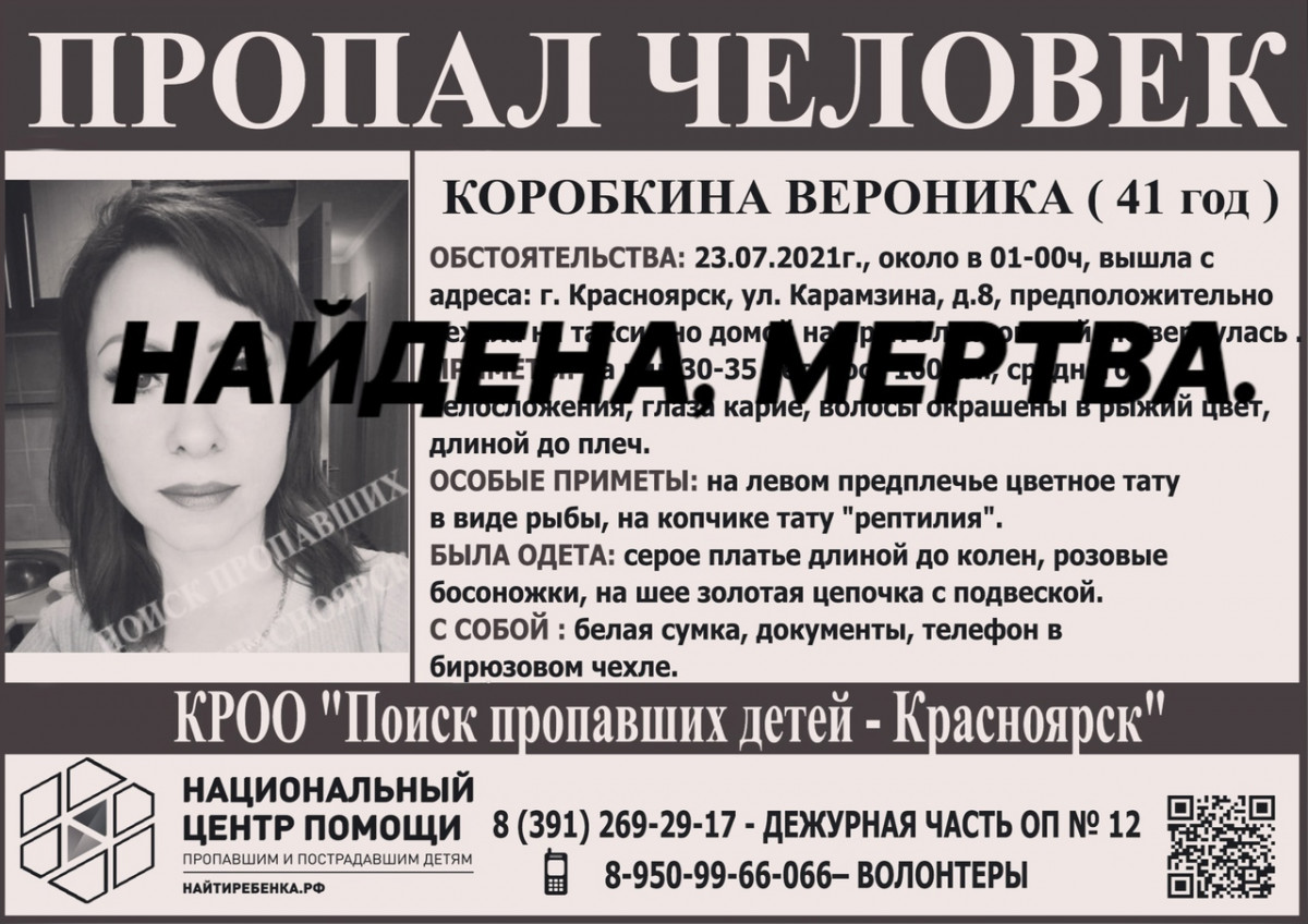 Родственники женщины обратились с заявлением в полицию по поводу её исчезновения. Тело погибшей обнаружили через несколько дней — 1 августа.
