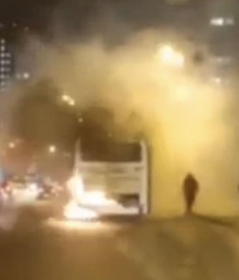 Кадры полыхающей маршрутки появились у наших коллег из «Горновостей». На них видно, как горит задняя часть автобуса.